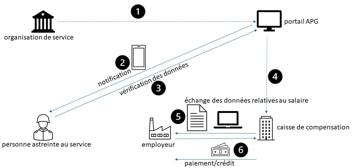 La caisse de compensation calcule l’APG et effectue le paiement ou la bonification à l'employeur ou à l’astreint.