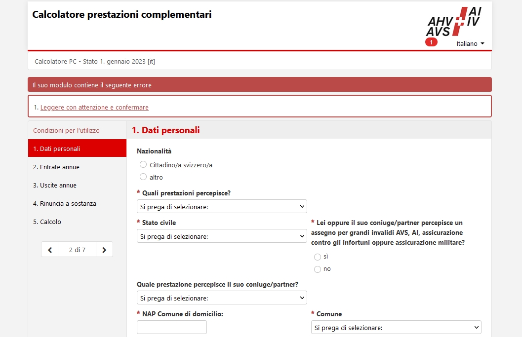 Qui è possible calcolare approssimativamente le PC cui si ha diritto.Gli organi per prestazioni complementari sono inoltre a disposizione per fornire informazioni. Di solito si trovano presso la Cassa di compensazione del Cantone di residenza.
